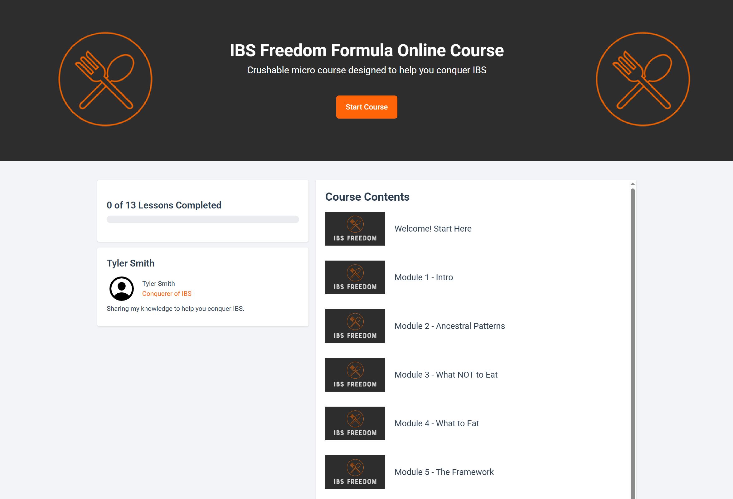 IBS Freedom Course 10 modules. All focused on one thing: helping you achieve 95% symptom relief using the Scientific 3-Level Elimination System quickly.