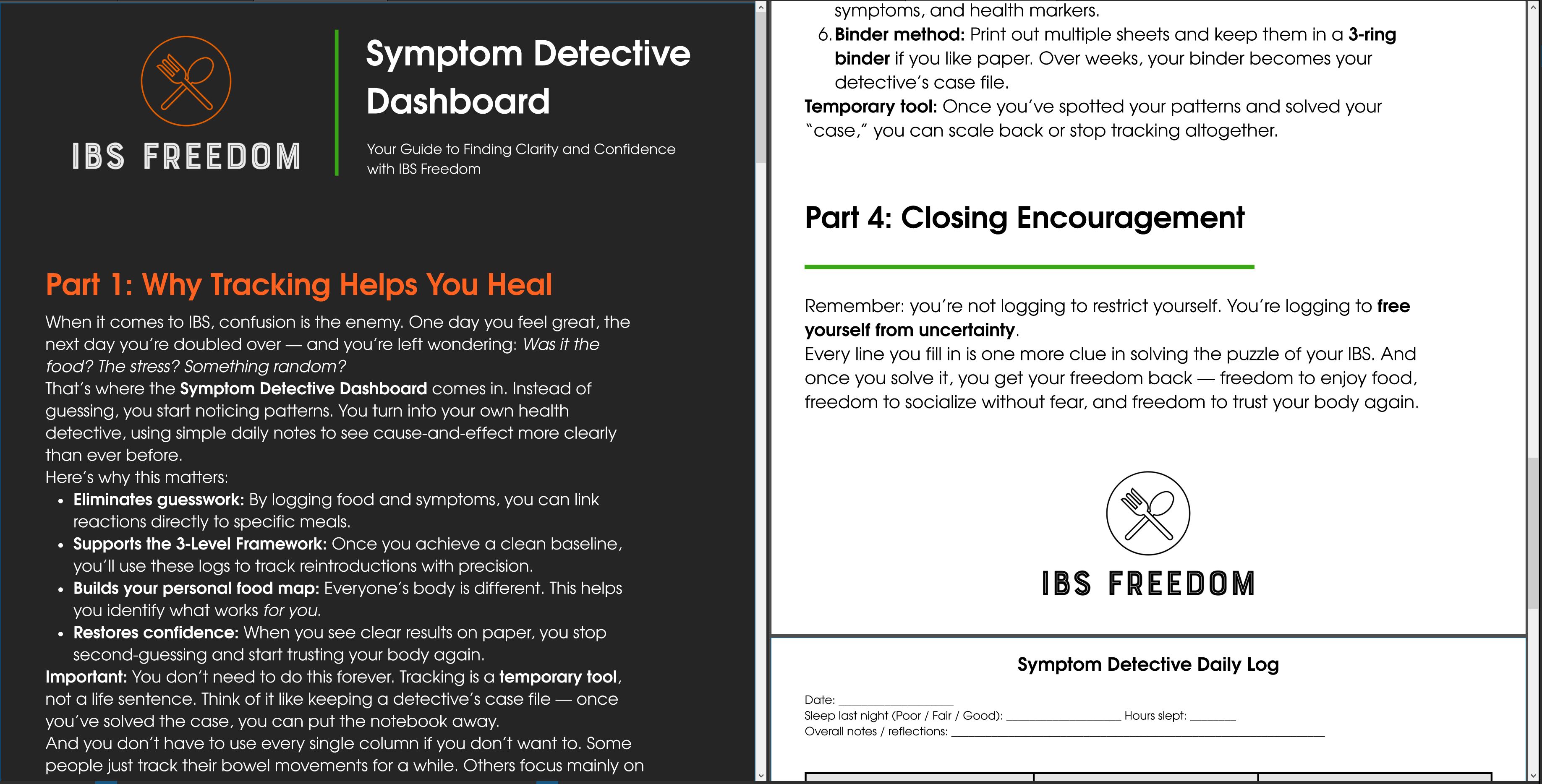 You are getting the complete IBS Freedom Course with 10 modules, available instantly. You are getting the Budget Healing Meal Plans. You are getting the Symptom Detective Dashboard. You're getting the 7-Day Gentle Transition Protocol, the Social Dining Confidence Toolkit, and the 72-Hour Rapid Relief Protocol.