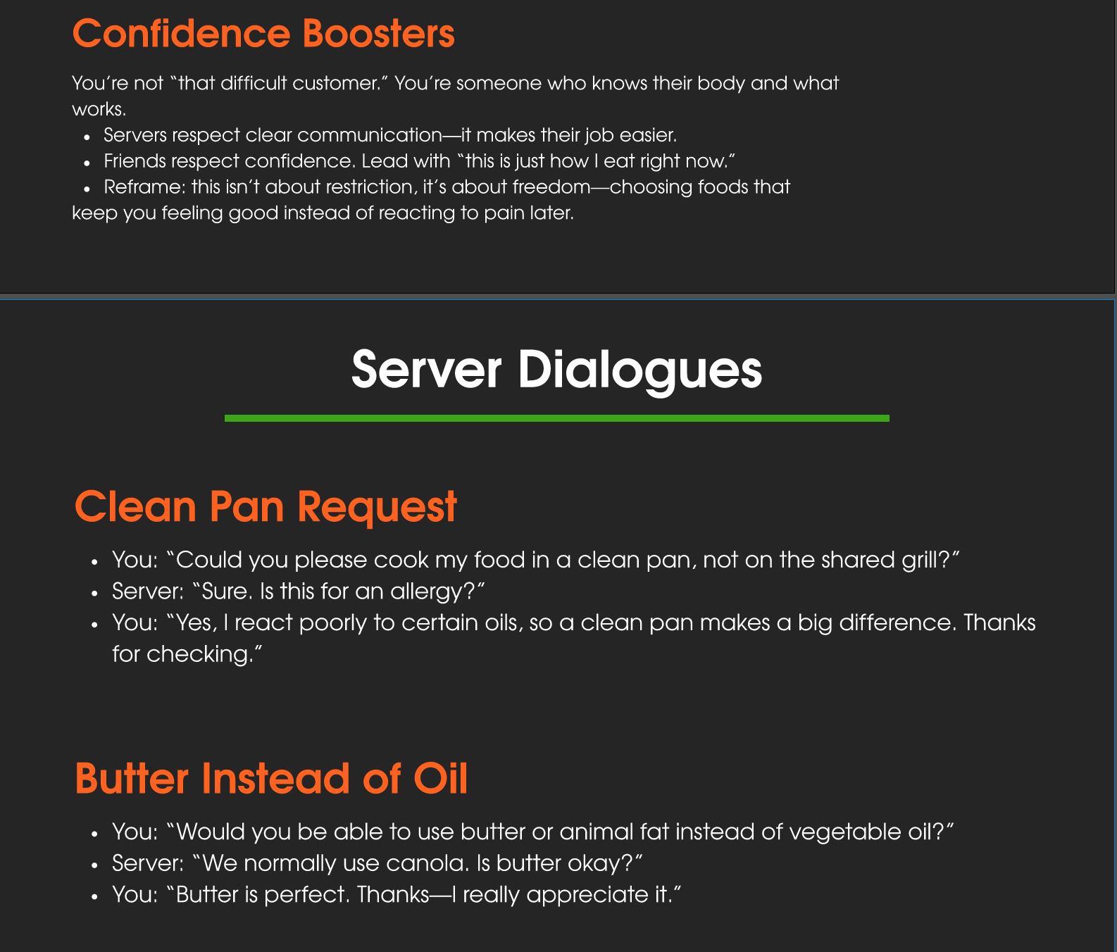 Social Dining Confidence Toolkit The confidence toolkit helps you navigate restaurants and social events with 90% accuracy before you even order. Never feel isolated again.